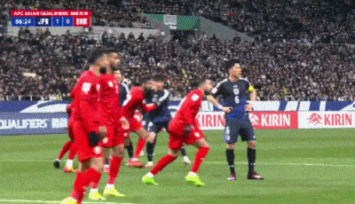 上半场比赛放浪,日本0-0巴林。